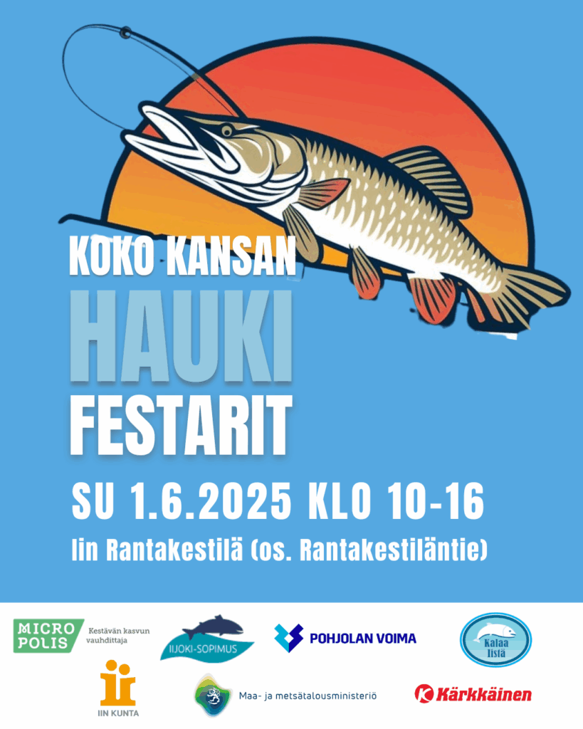 Koko kansan HAUKIFESTARIT järjestetään ensimmäistä kertaa Iin Rantakestilässä (os. Rantakestiläntie) sunnuntaina 1.6.2025 klo 10-16.