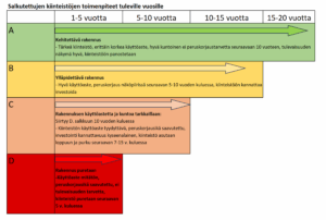 Työkalumme avulla voit luokitella kaikki kiinteistösi neljään selkeään kategoriaan, jotka perustuvat niiden mm. kuntoon ja käyttöasteeseen. Tämä luokittelumalli antaa sinulle syvällisen ymmärryksen kiinteistöjesi nykytilasta ja auttaa sinua tekemään dataan pohjautuvia päätöksiä.